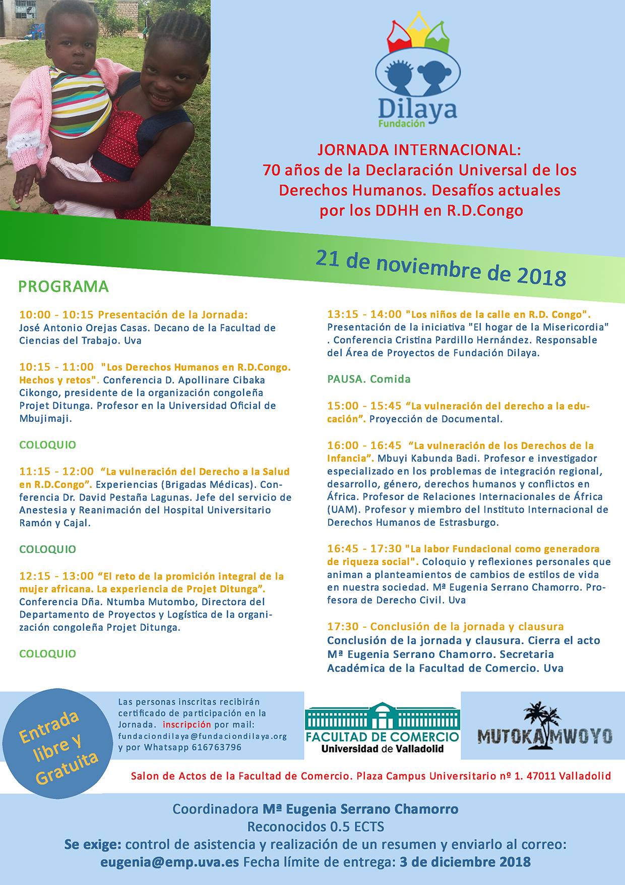 Entre los conferenciantes se encuentran el padre Apollinaire y Mwacici, dos de los pilares fundamentales de Projet Ditunga. También intervendrá el Dr. Pestaña para contar su experiencia como líder de las brigadas médicas en Ngandanjika.